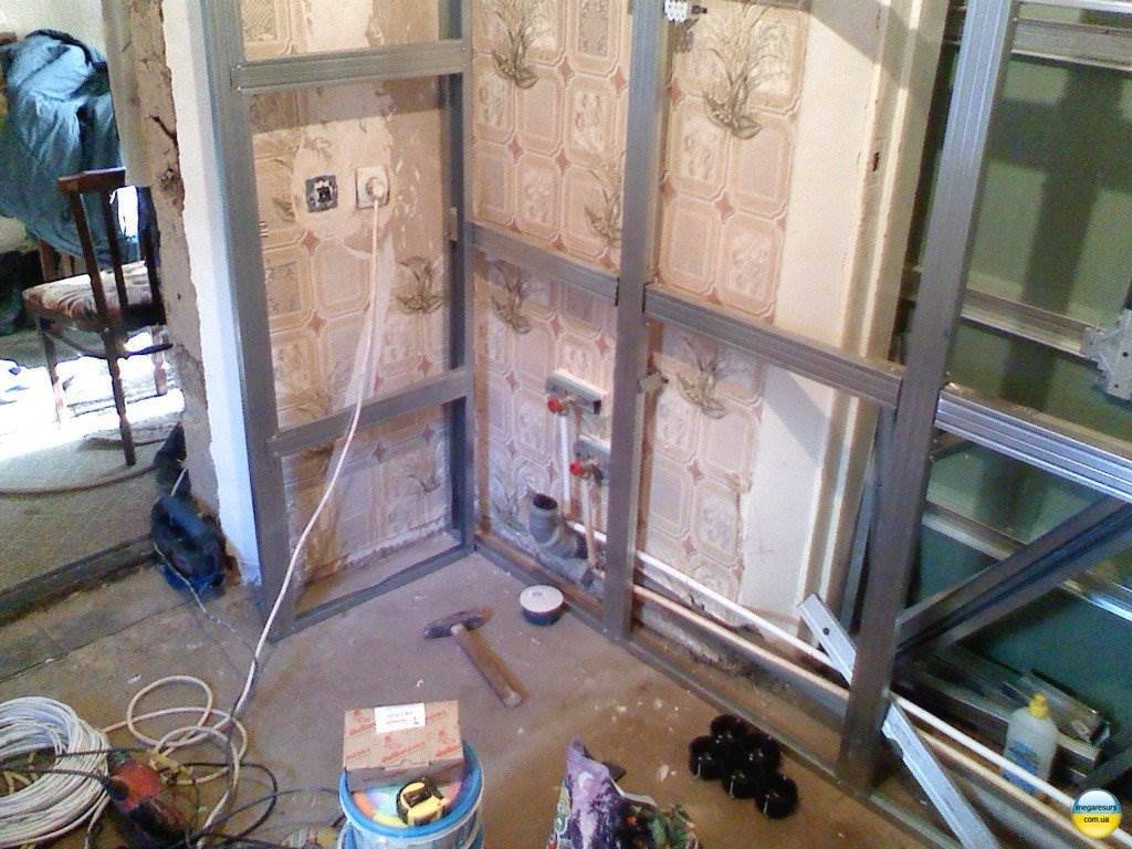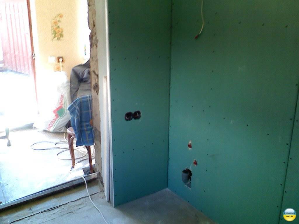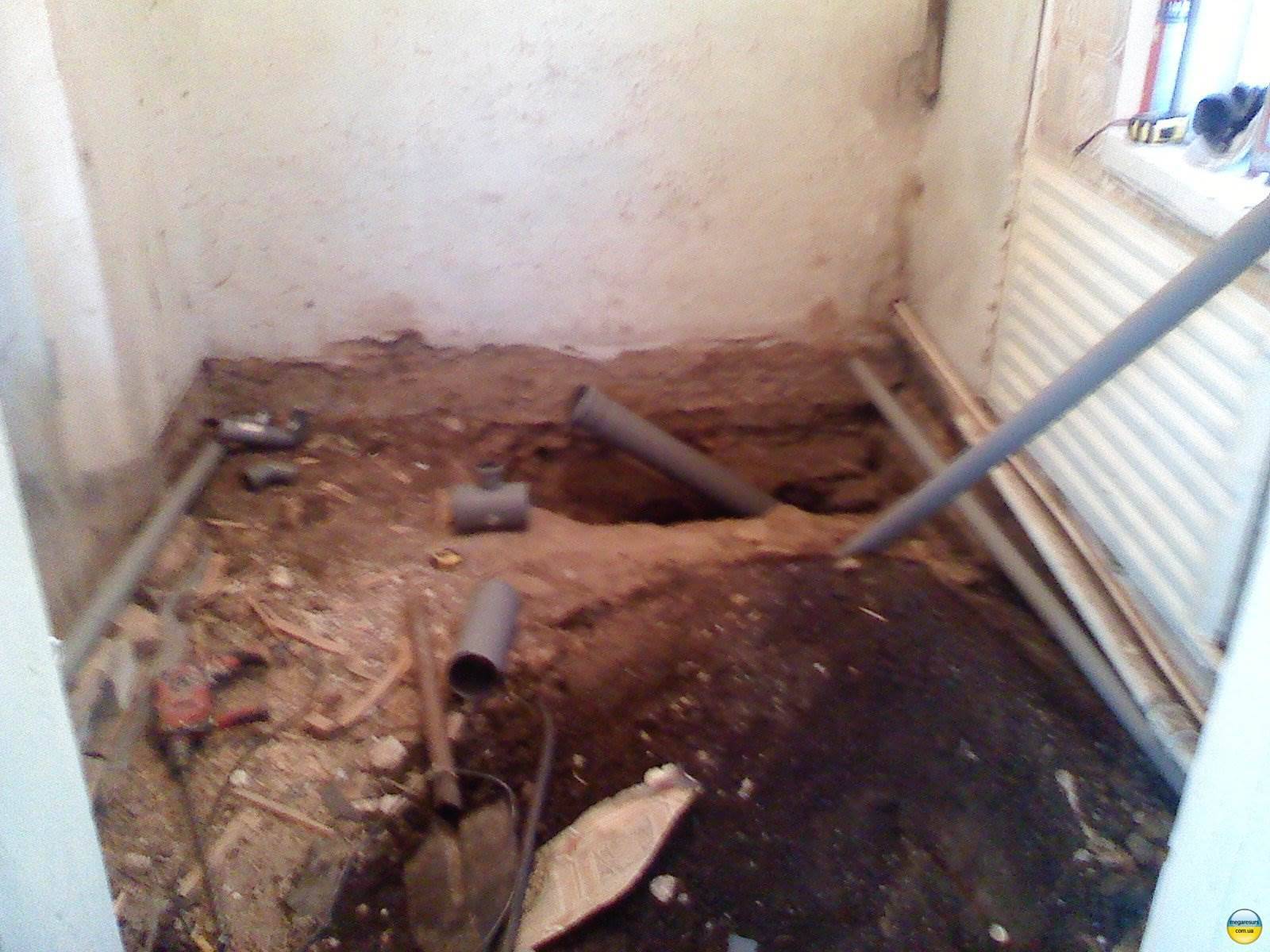 Переделка комнаты в ванную комнату, капитальный ремонт, новая система канализации, рытье траншеи, подключение в существующую сливную яму, демонтаж пола деревянного, заливка стяжкой цементно-песчаной, монтаж гипсокартонной перегородки, монтаж фальш стены из гипсокартона, укладка кафеля, монтаж системы вентиляции, монтаж каркаса и пластика на потолок, монтаж сантехнических приборов, подключение ванны и унитаза, новая электрика, установка и подключение точечных светильников, подключение электро фурнитуры, монтаж лючка ревизионного, сборка и монтаж межкомнатной двери.