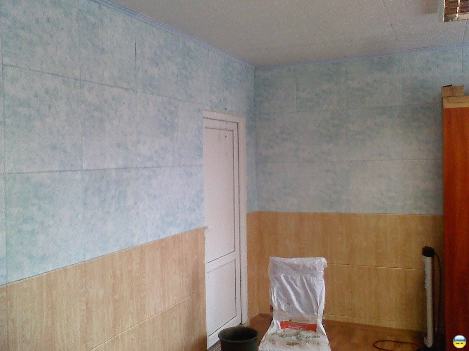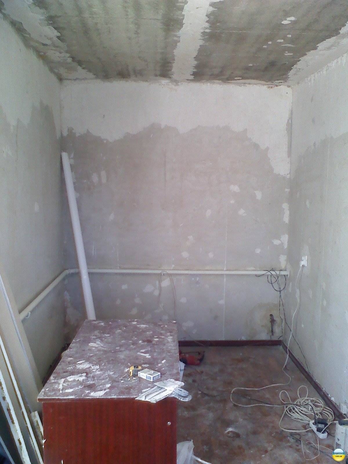 Косметический недорогой ремонт в офисе, демонтаж обоев со стен и потолка, частичная шпаклевка стен и потолка, поклейка пенопластовой плитки на стены и потолок.