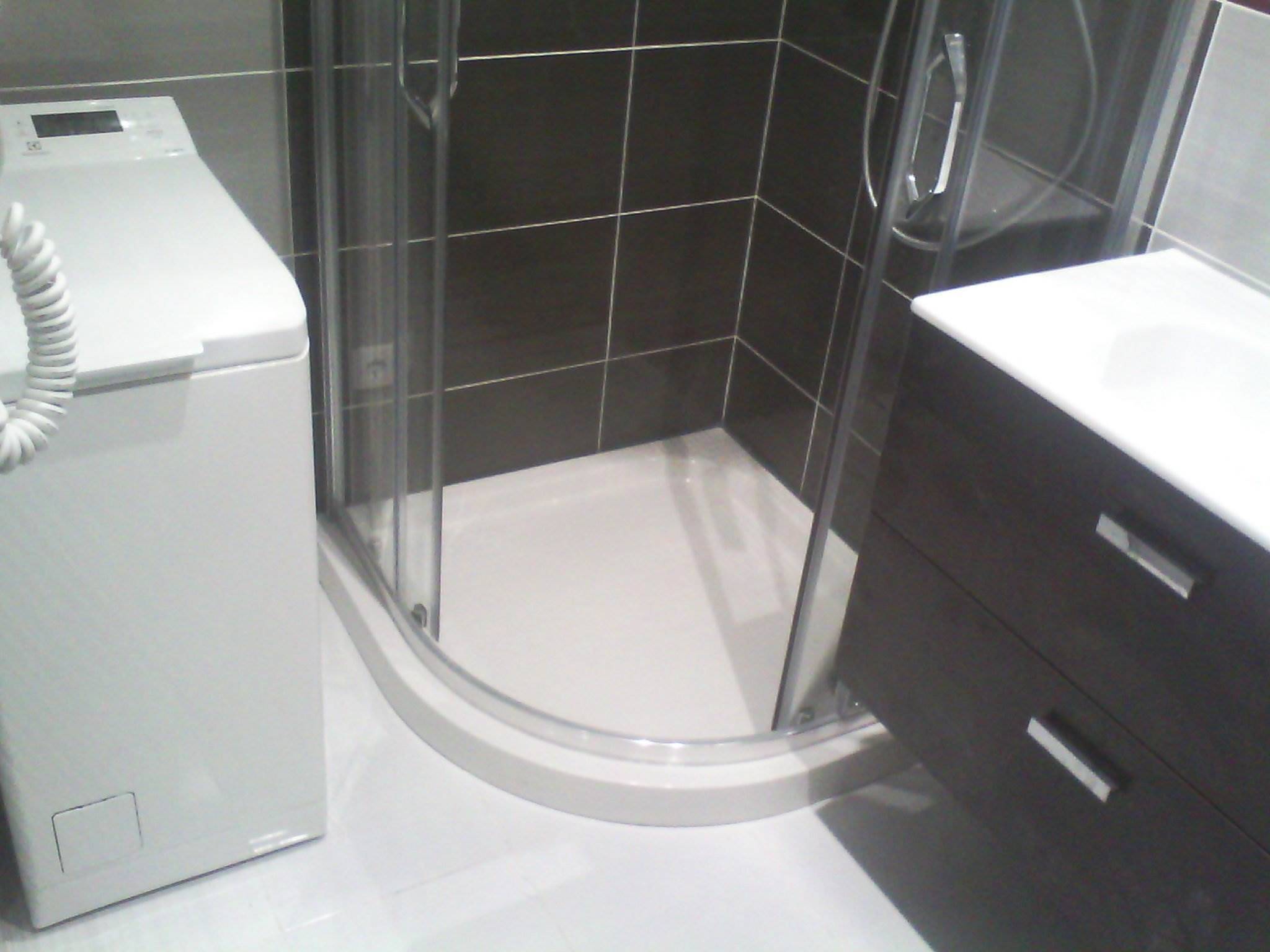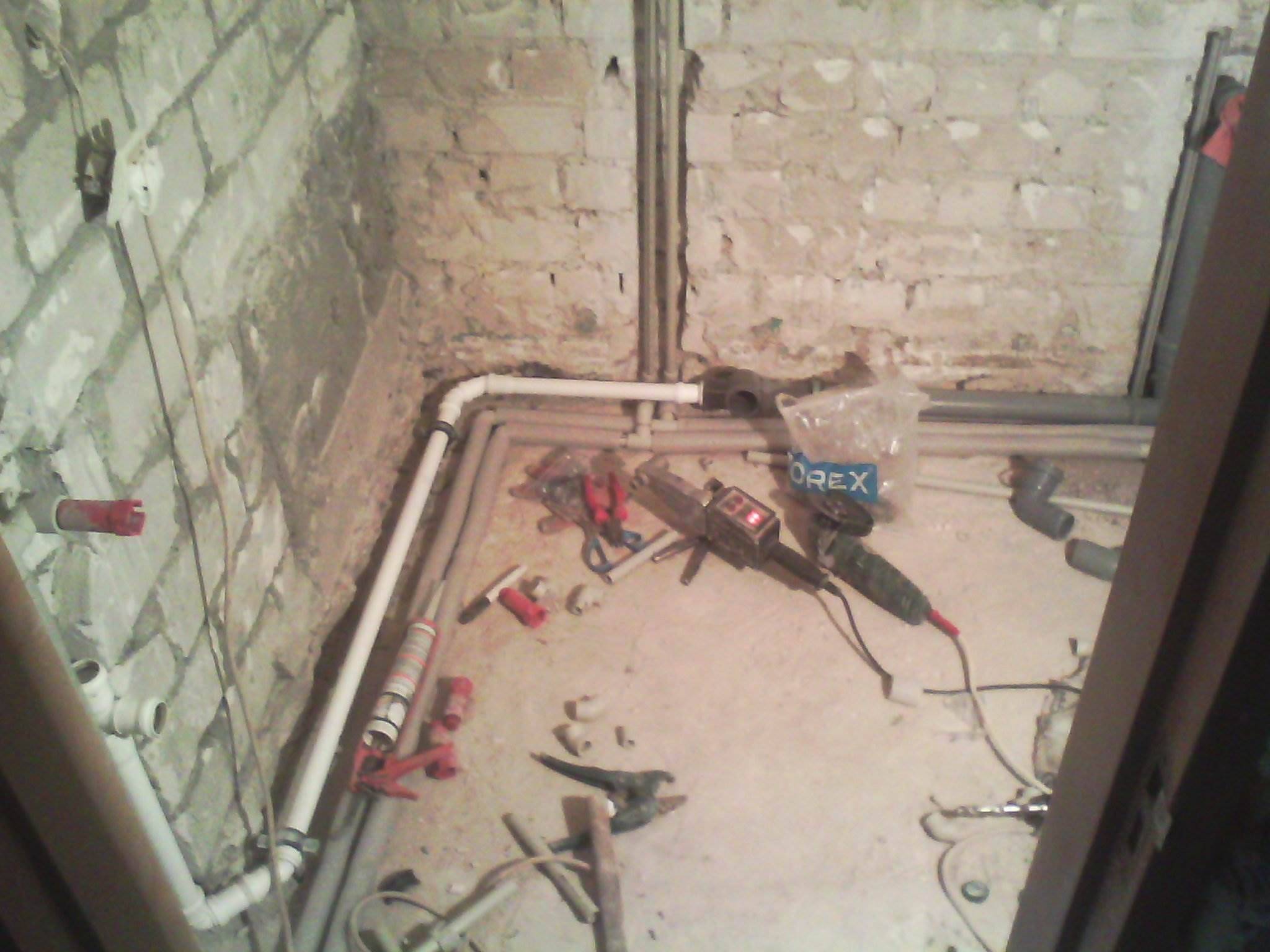 Выполнили разводку сантехники, монтаж инсталляции, демонтаж межкомнатной двери, демонтаж старой электропроводки, обшивка стен гипсокартоном, монтаж перестенка из гипсокартона, новая электропроводка, монтаж силового щита и автоматов, выравнивание стен штукатуркой, укладка кафеля, монтаж душевой кабинки, монтаж боллера (водонагревателя), монтаж стиральной машины.