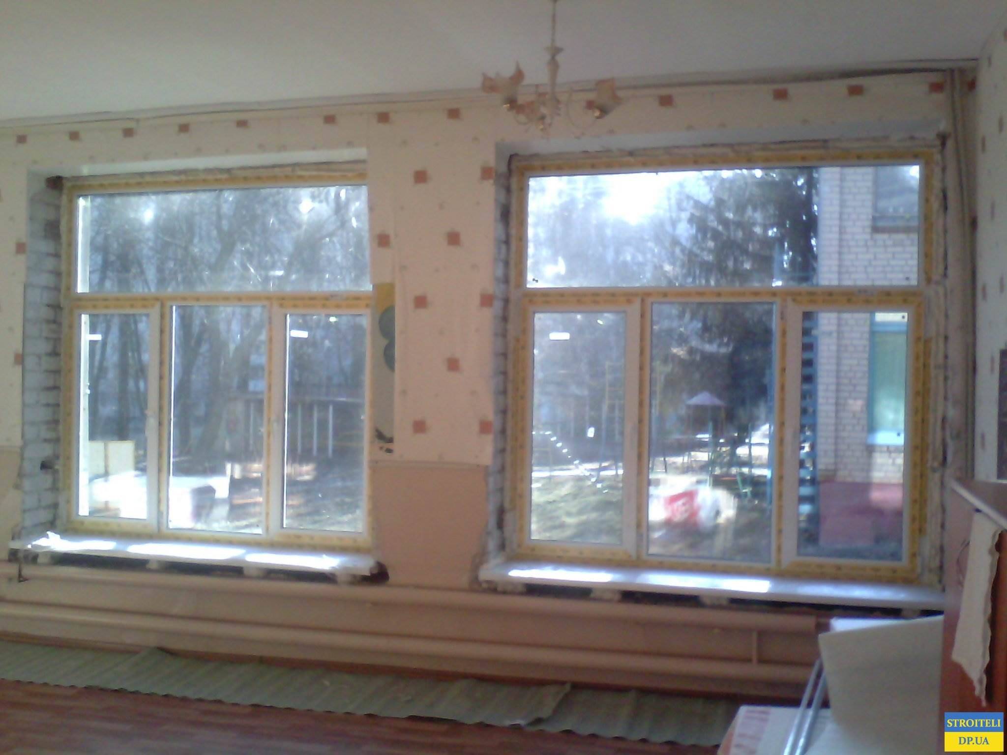 Выполнили монтаж уголка на откосы, штукатурка откосов. шпаклевка откосов, покраска откосов. обои клеятся силами персонала.