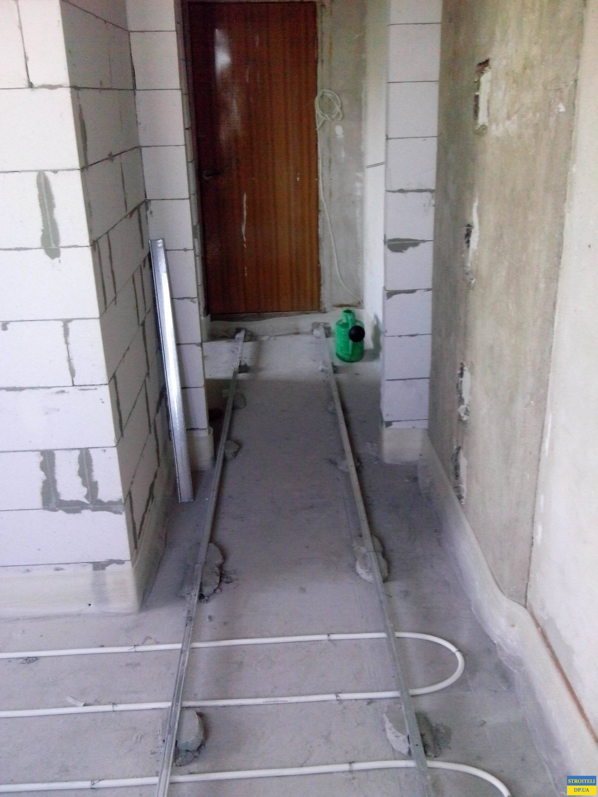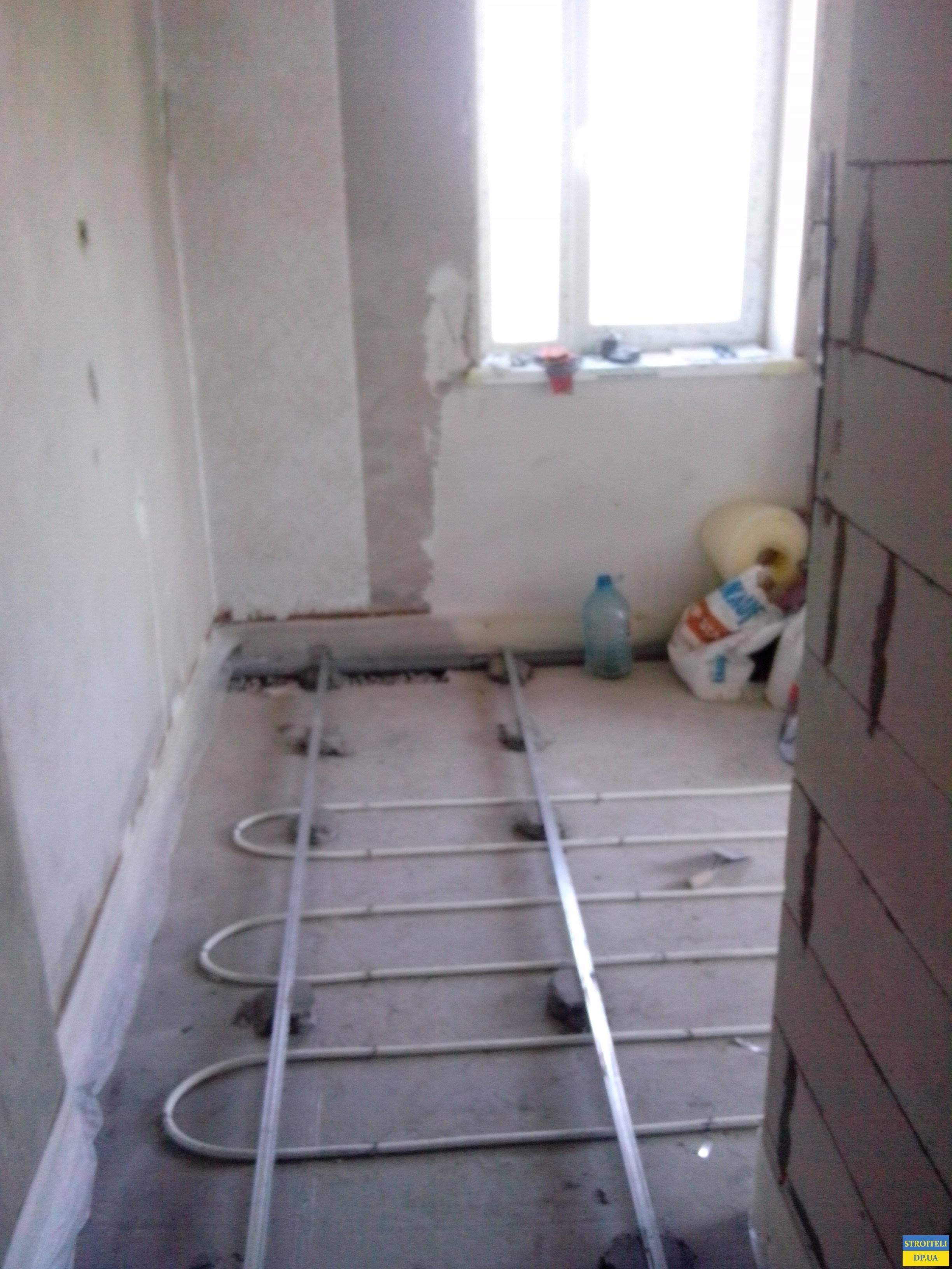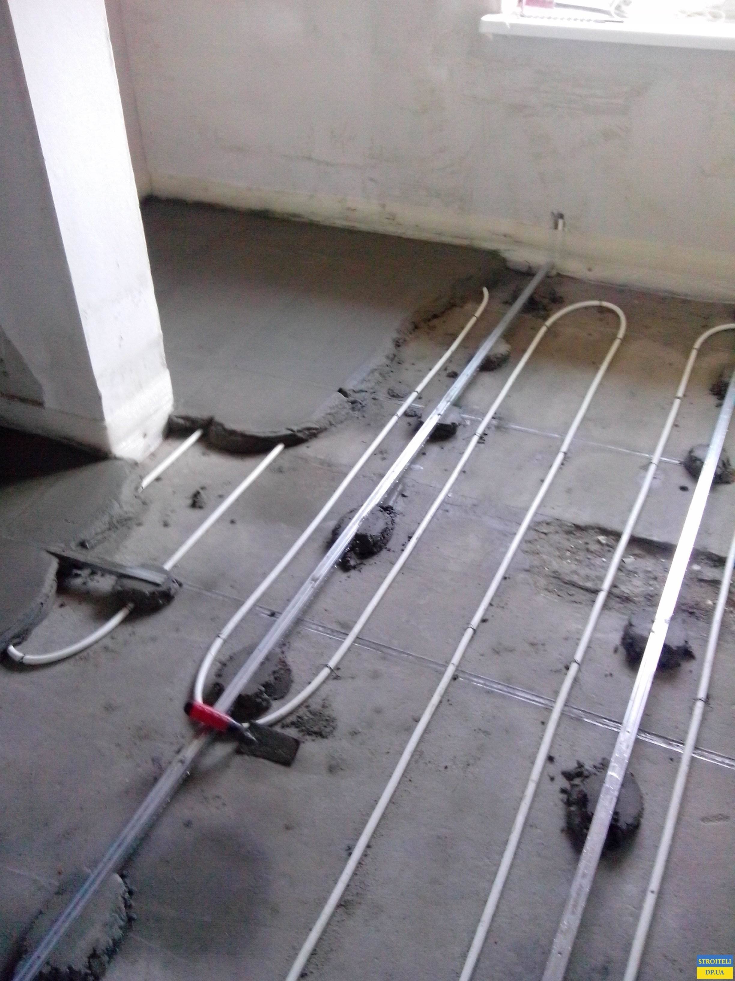 Выполнили укладку теплый пол водяной, заливка пола цементно песчаной стяжки.