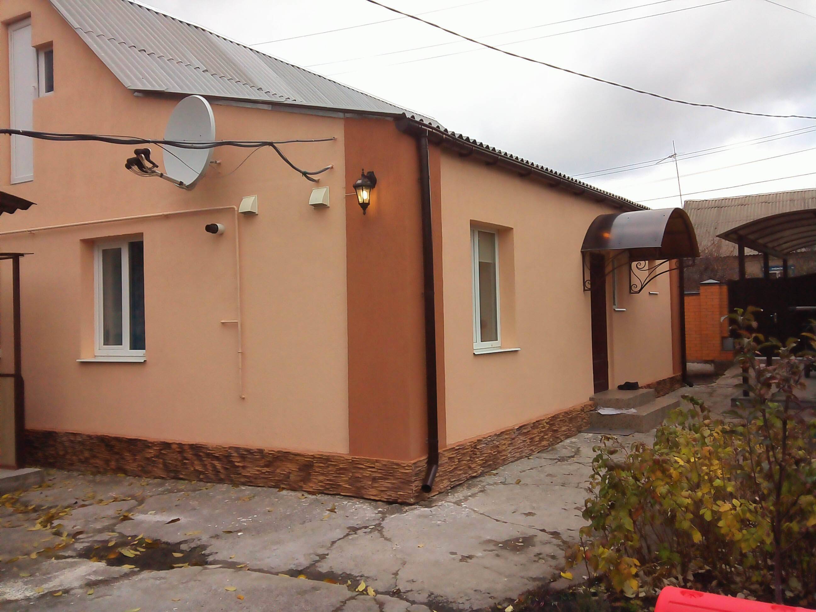 Выполнили очистку цоколя и пояса, поклейка пенопласта, шпаклевка пенопласкта с укладкой сетки, нанесение декоративной штукатурки короед, покраска короеда, укладка декоративного камня на цоколь.